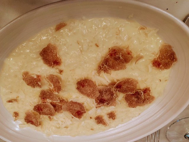 The main dish that attracted me was Risotto with White Truffles and lots of Parmigiano. The waiter suggested a red wine, and to my delight I found the Eugenio Bocchino Barbera D’Alba on the list, which paired beautifully. I was happy to know that it is a Giannoni Selection, imported by my friend Gemma Iannoni.