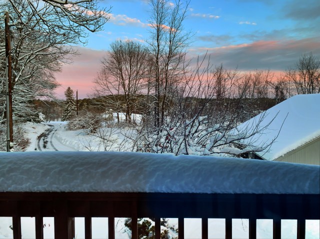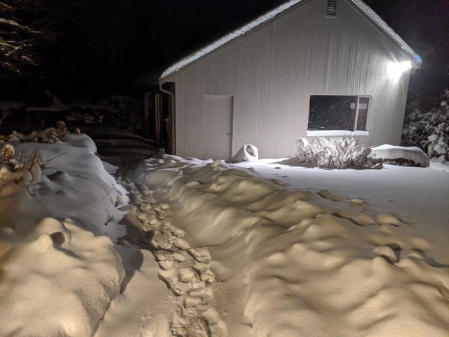 The class and business plan coaching sessions went very well, and I was able to get back home Monday night at 7 PM. Lorin had plowed the driveway in the afternoon. As always, Barbara ably handled the shoveling of you walkway, Monday afternoon and Tuesday morning. Since the snow continued to mid-day on Tuesday, I was able to run my snow thrower that morning, so the driveway was clear by 11:30 AM.