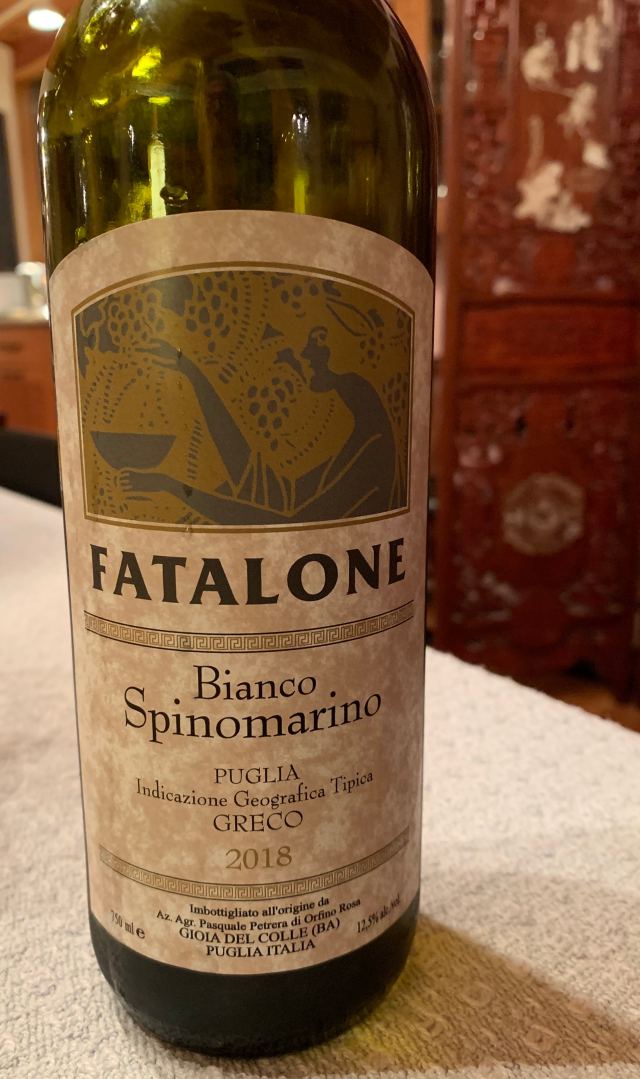 One of my favorite Italian white wines has always been Greco di Tufo from Campania. I haven’t seen that in stores for some time, but Eileen at Social Wines had a very good Greco from Fatalone in Puglia, and that was a beautiful match.