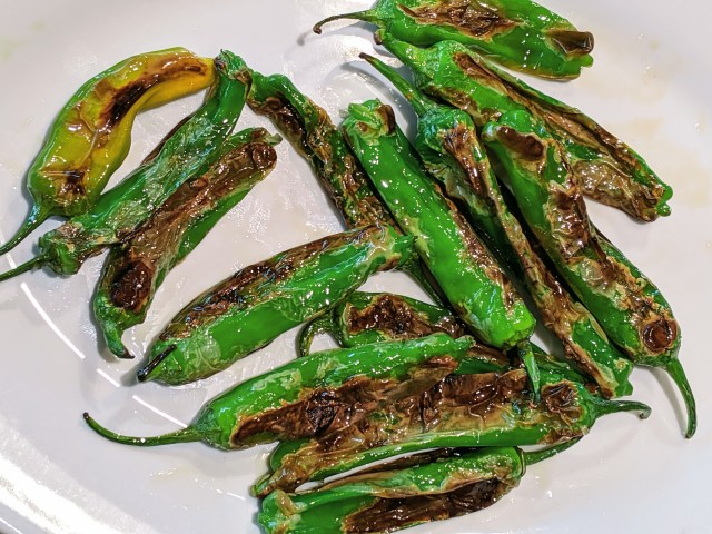 The final step was adding the Fave Beans, plus the boiled noodles and some of the pasta water, cooking it long enough to finish the noodles and leave a sauce. All served in a pasta bowl and accompanied by grilled Shishito Peppers and a glass of Nerello Mascalese Bianco by Valenti, one of Nick Mucci’s growers in Sicily. Perfetto!