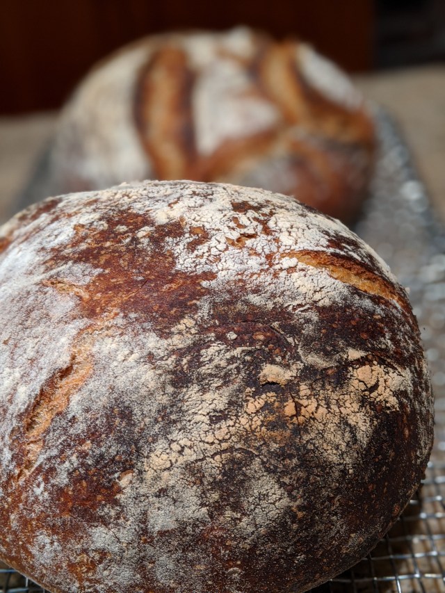 Next, it was time to bake bread again. I hadn’t done two batches of bread in the same month for several years, but the need was there, and I had the time and motivation. Sticking to the same Field Blend #2 formulation, I was able to deliver two more fine loaves. I predict you’ll see more bruschetta soon.