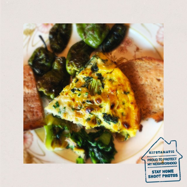 The next day I combined a wedge of leftover frittata with blistered Padron Peppers and a slice of my pan-grilled whole wheat bread to make a delicious lunch.