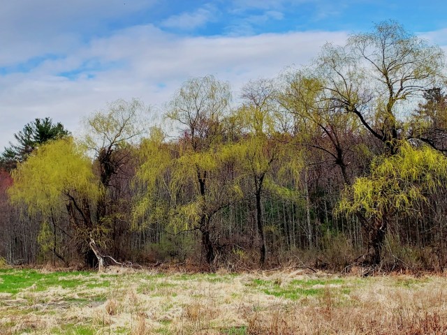 Sanity these days requires exercise during these crazy, buttoned-up times. Fortunately, walking along the country road on which we live is accessible, scenic and safe. Barbara and I often go together during the walk, covering a mile or a little more on a nice day. As we go downhill toward a small pond, we can often look across a neighbor’s field and see the willow trees as they become green this time of year. It’s very peaceful.