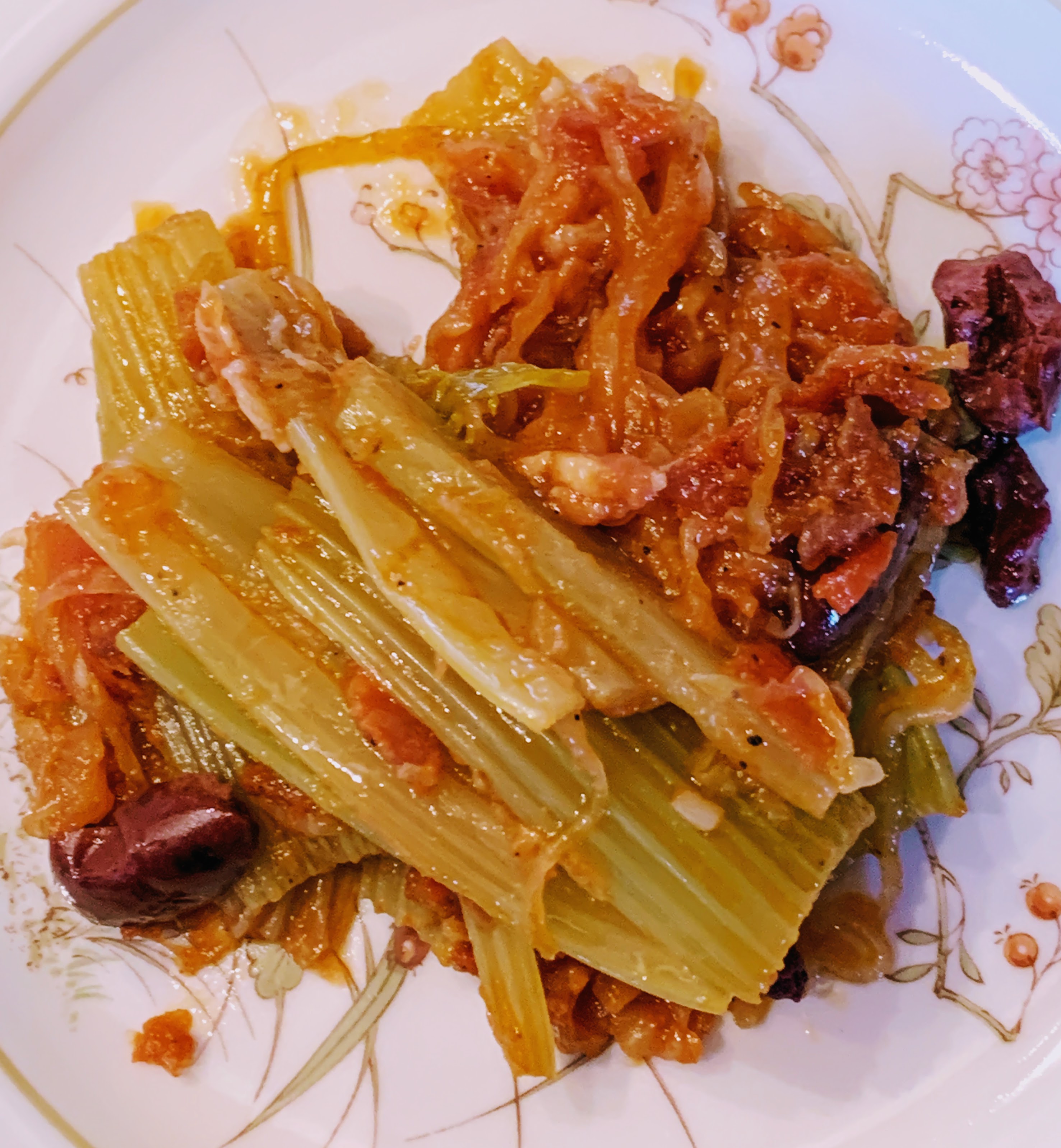 Marcella - Braised Celery with Onion, Pancetta, and Tomatoes