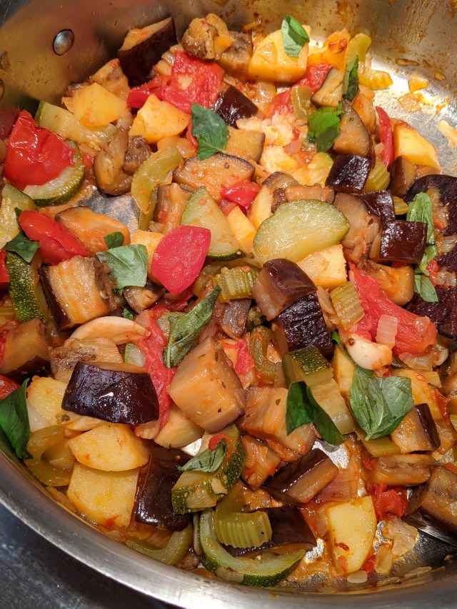 In anticipation of this season, I decided to make Cianfotta last night, as a way to utilize the eggplant in the refrigerator which was beginning to show its age. I’ve tried two or three versions over the years, and you can find them in previous posts by entering “Cianfotta” in the search box on the top right side of any of my blog pages. The one I made yesterday was a recipe from Katie Parla’s book, Food of the Italian South (see link above).