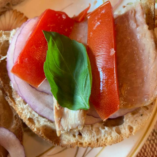 I searched high and low on the internet to buy more of it, but was unable to locate any. Then I decided to explore it with the management of Portugalia, a market with all things Portuguese, less than 2 hours’ drive from my home. It took a few months, but they were able to import it, and they delivered! I recently placed two large orders, and now am ready for a meal with delicious tuna on a moment’s notice. With some of my bread grilled, sliced lightly-pickled red onions, plum tomato fillets, fresh basil from the garden and several glugs of smooth Portuguese olive oil, lunch is on the table in 10 minutes.
