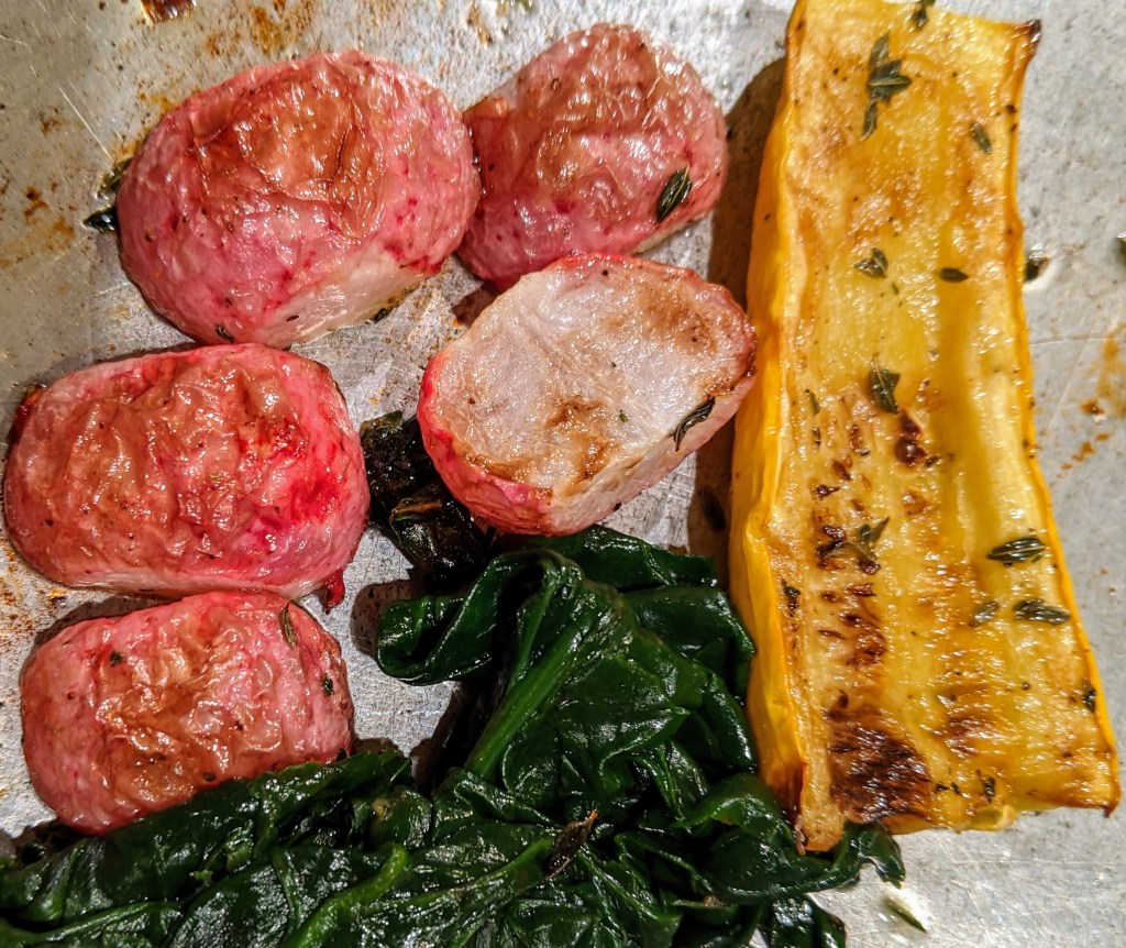 I rolled the pasta slightly thicker than normal and cut it into tagliolini or tagliatelle shape (not sure which). To accompany the pasta, I decided to broil rather than sautée the vegetables (yellow squash and radishes), and I was happy I did.