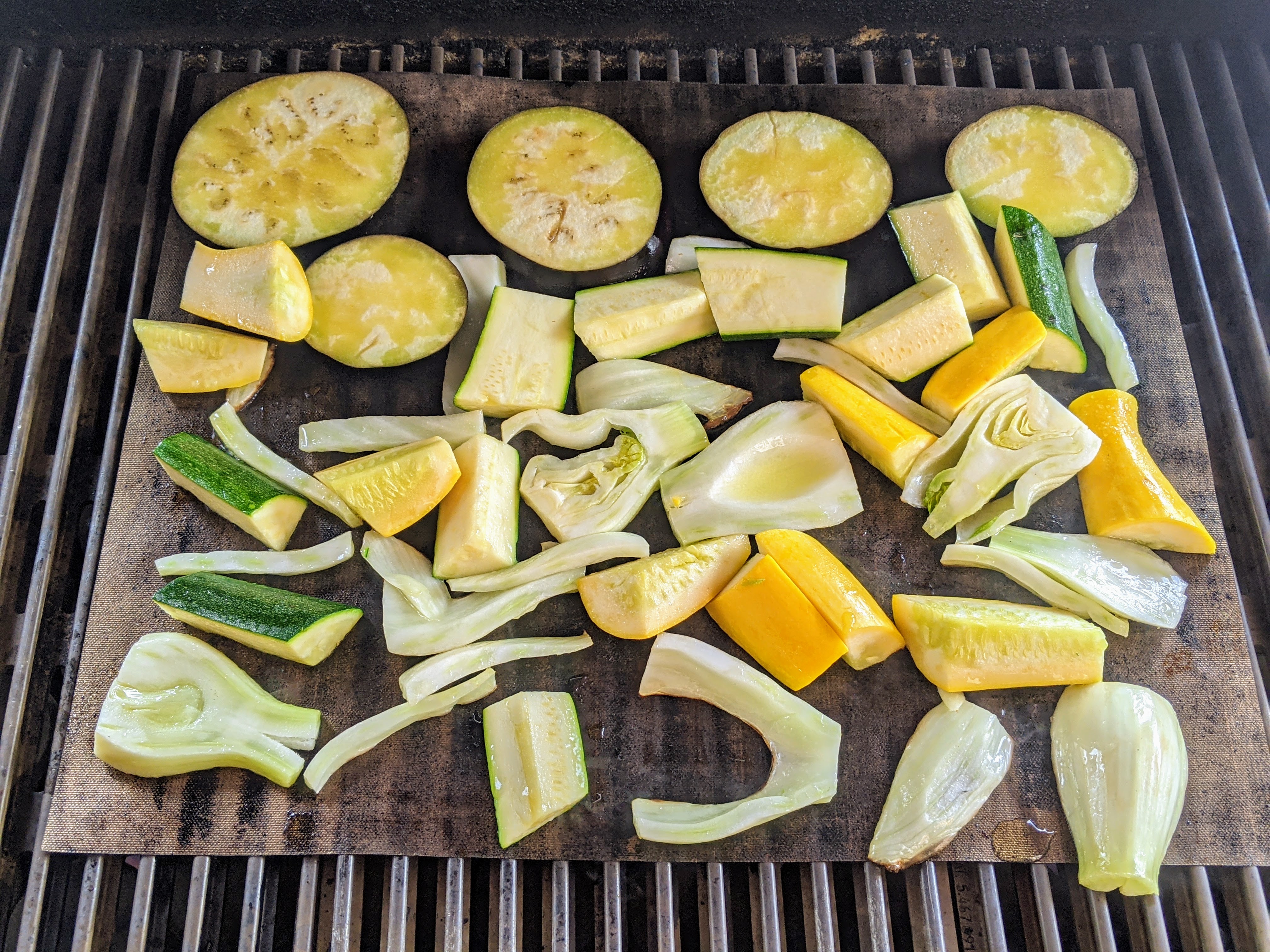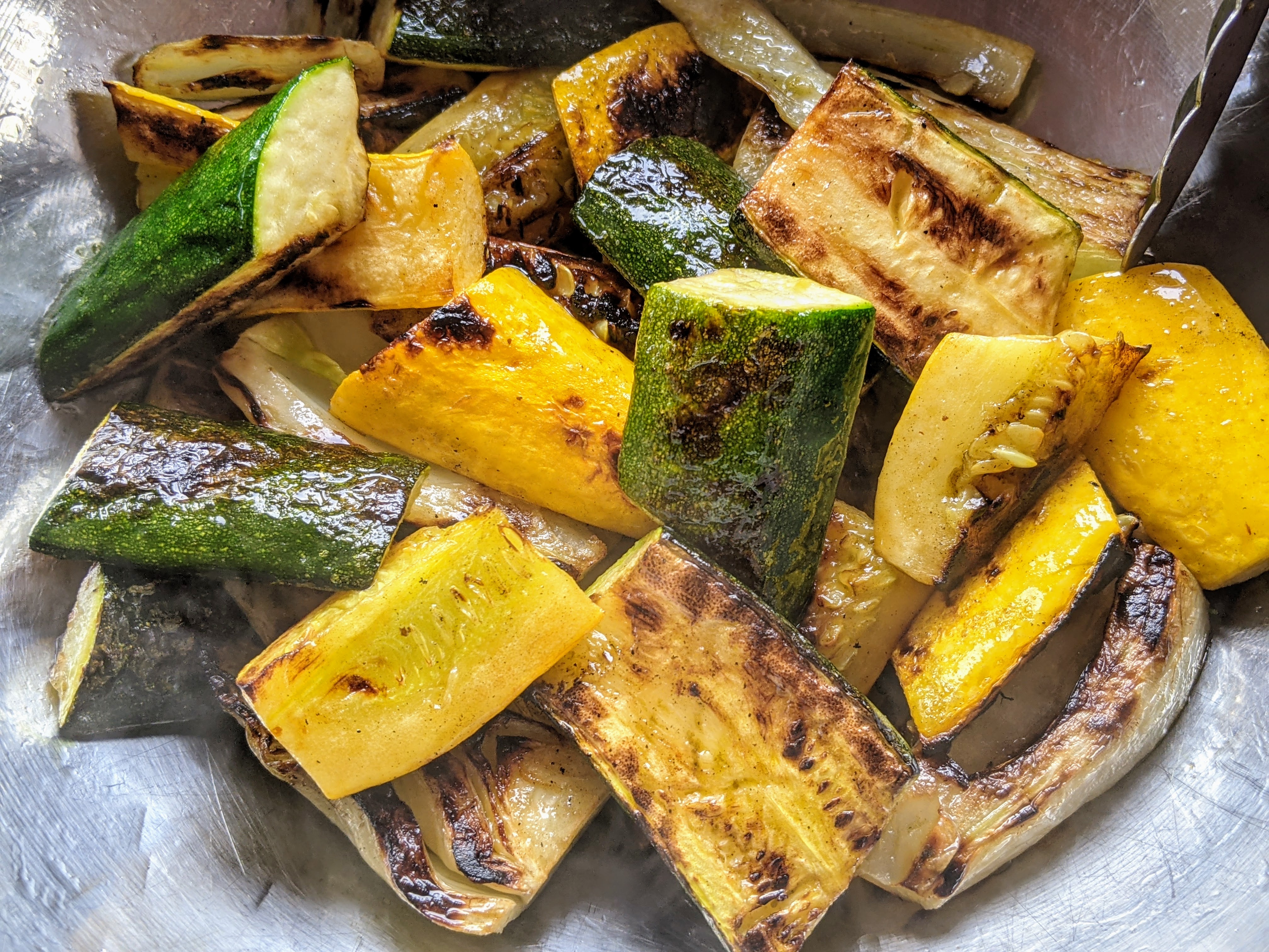 Sliced eggplant, zucchini, yellow squash, fennel, and onion, plus a single plum tomato, chopped up and added (before it went bad) provided the intense flavors. The dish was so good, I ate it all before I took a photo of the bowl. Use your imagination, if necessary.