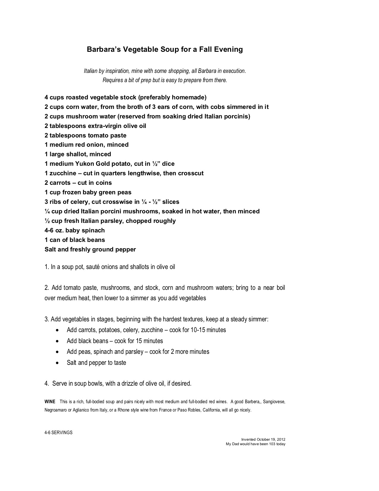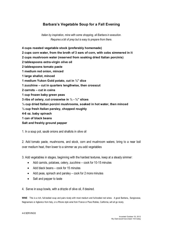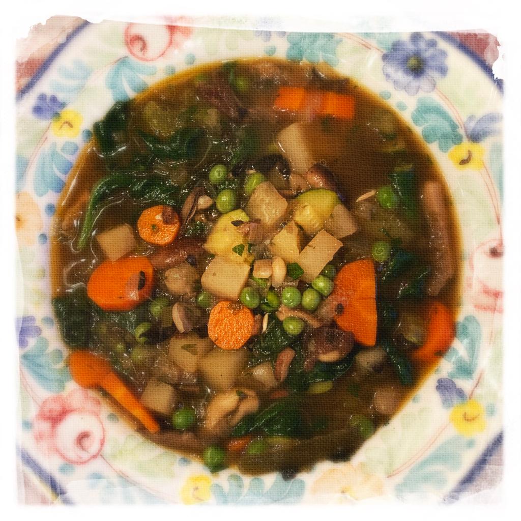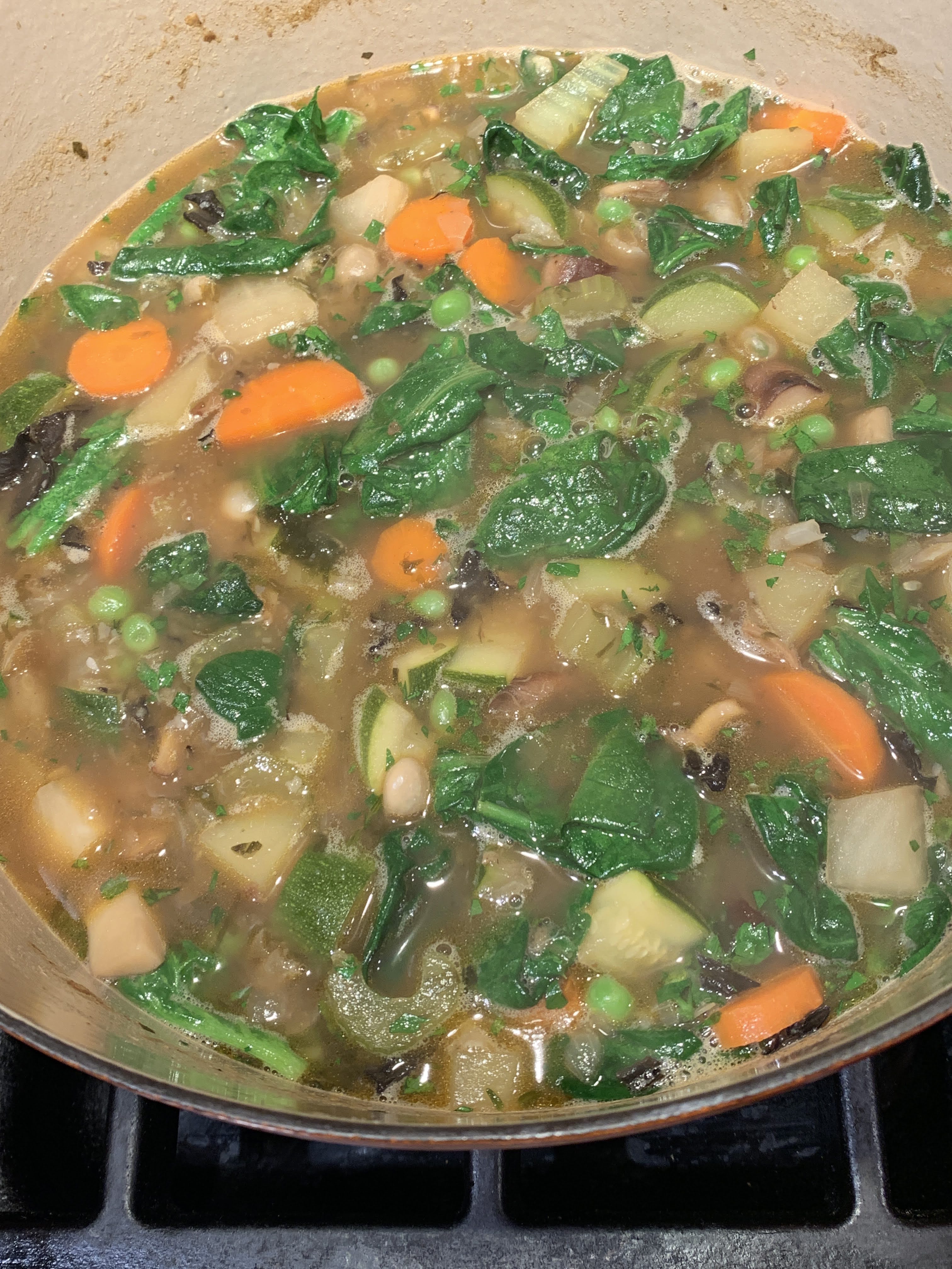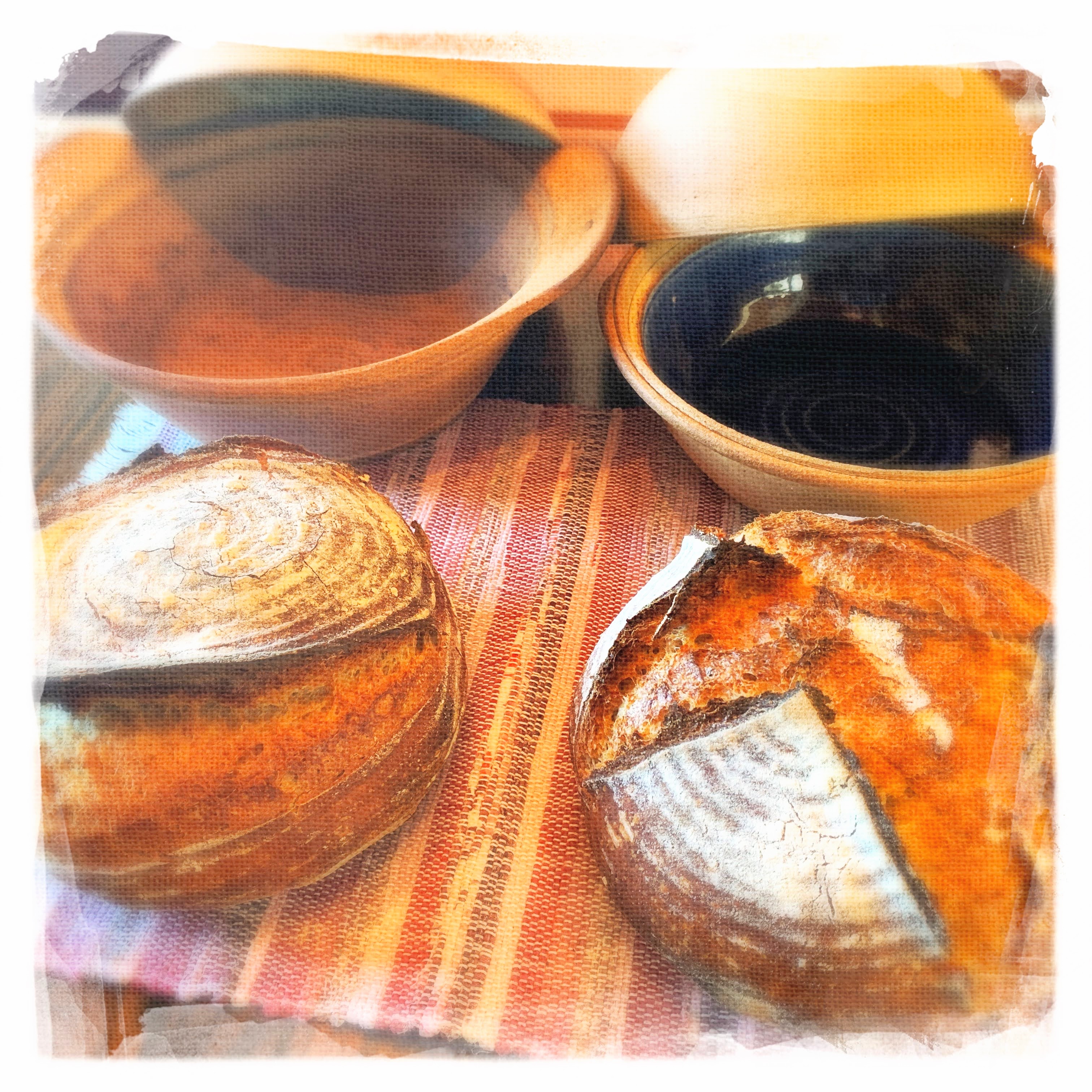 Every two or three weeks I’ve been making (and eating) two loaves of my Tartine-Style Sourdough Country bread. When I made the batch last week, I decided to add a third loaf, with olives, in a batard shape, vs. the standard boules. These went swimmingly with a vegetable soup, inspired by one of Barbara’s recipes several years ago.