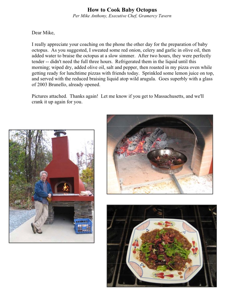 Octopus 1.0 – I learned from Chef Mike Anthony at Gramercy Tavern how to cook baby octopus (August, 2010)