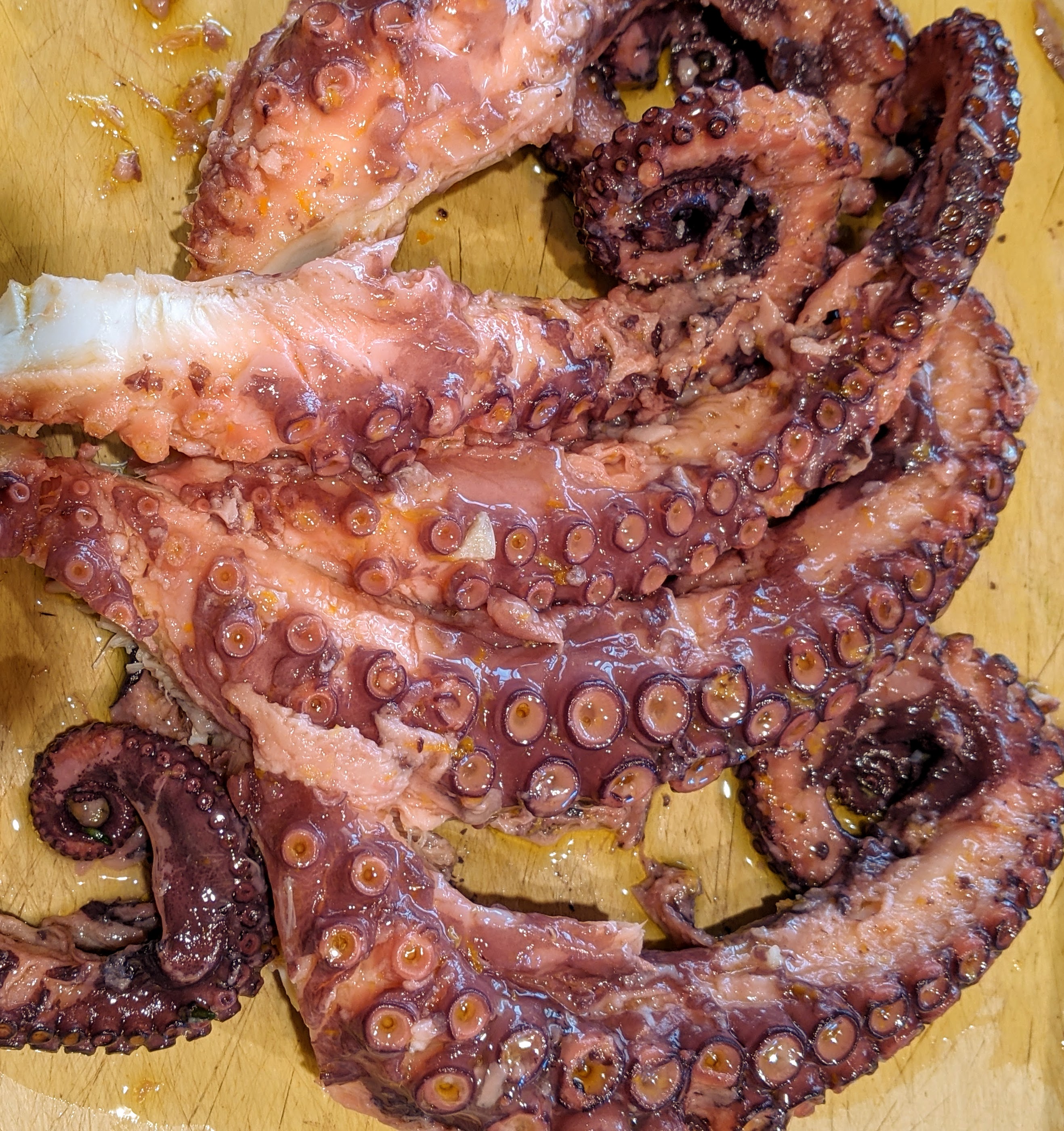 Octopus 3.0 – I discover Jessie Schenker’s technique for poaching octopus and then marinating it overnight (March, 2020)