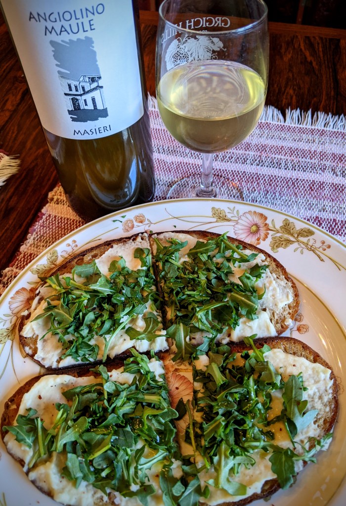 e.g. arugula, chard, spinach, hummus, bean purée, tomatoes, grilled onions, zucchini, peppers, mushrooms….almost limitless possibilities.