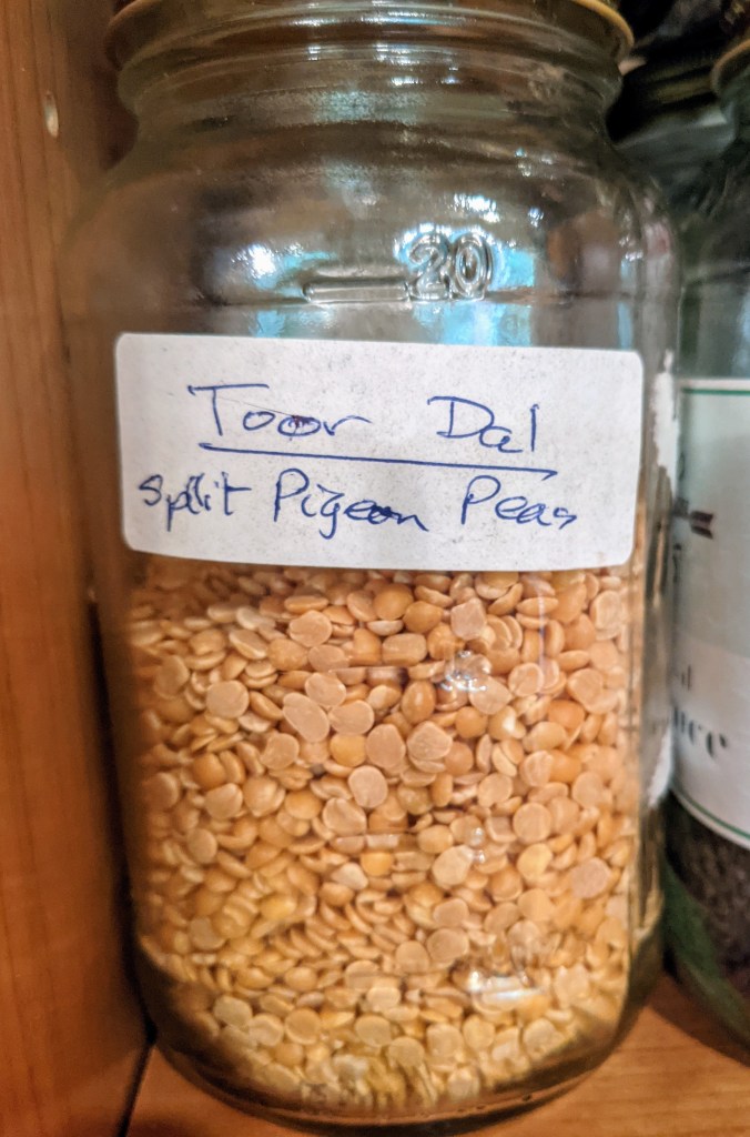 It’s intriguing that I am inspired to cook specific dishes by a wide variety of stimuli. One recent example is a dinner featuring Indian Dals — lentils of various kinds. The impetus came from opening the main cabinet in our kitchen, which we do multiple times a day. Sitting in a prominent place, at eye level, is a jar of Toor Dal, also known as Split Pigeon Peas.