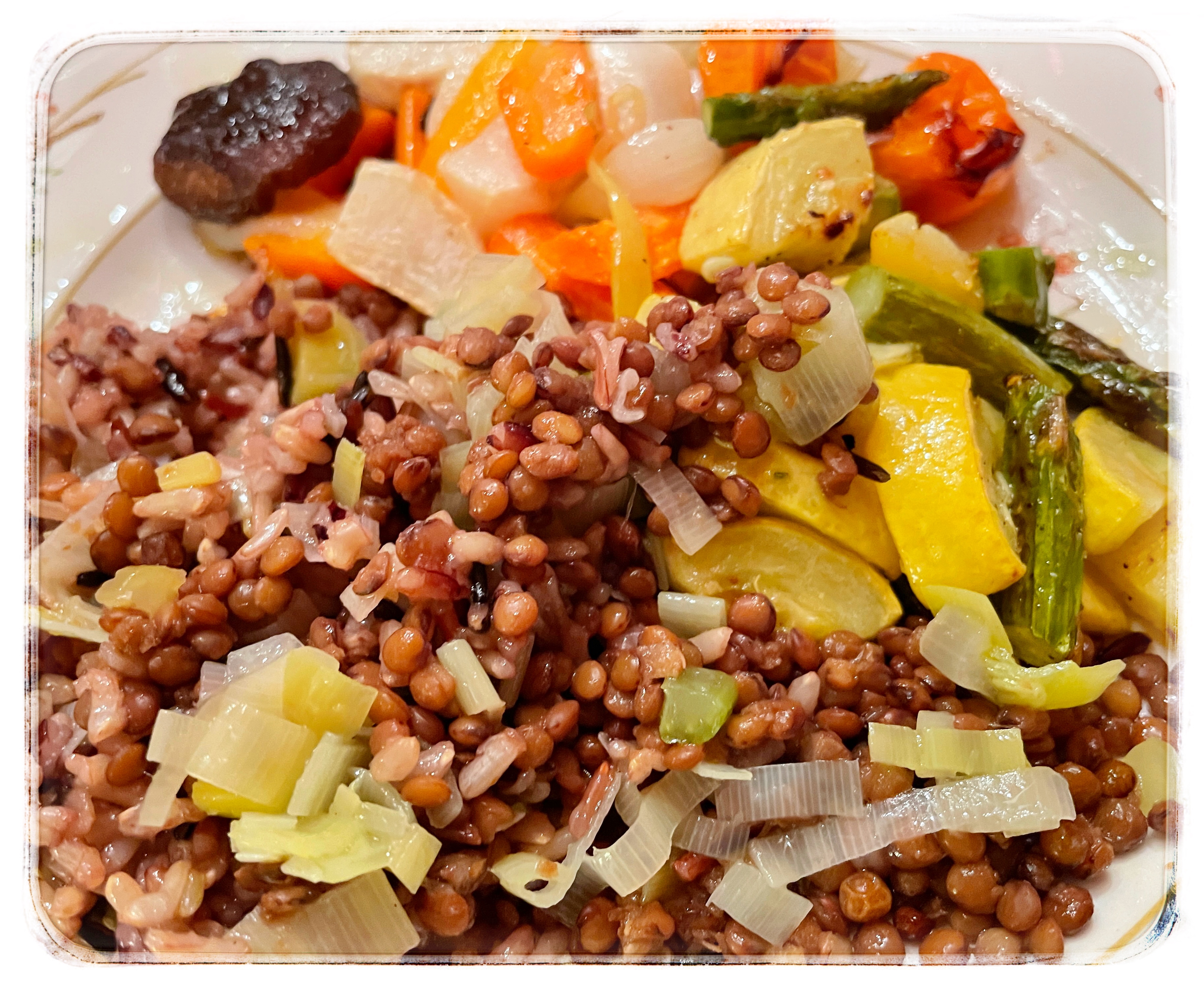 Finished Dish: Lentils with Roasted Vegetables and Rice