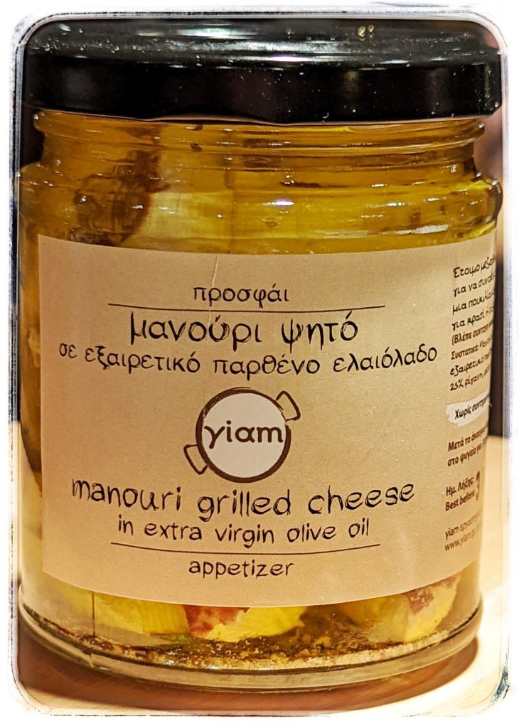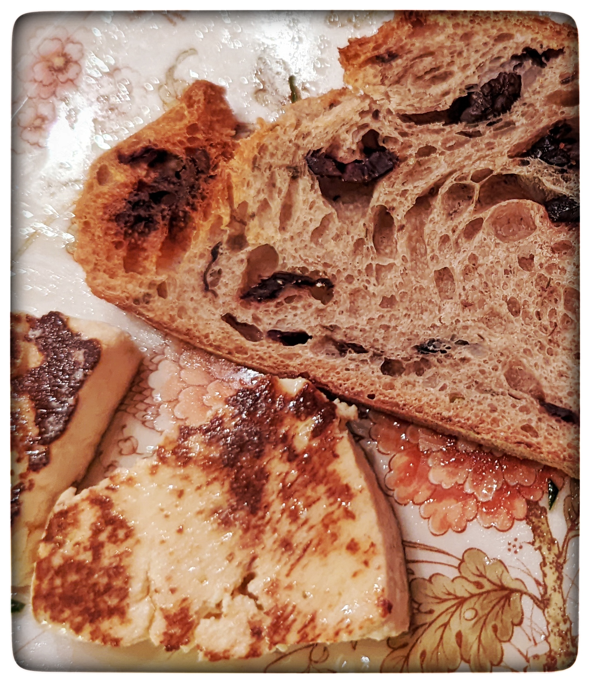 Grilled Manouri Cheese with Eataly’s Olive Bread