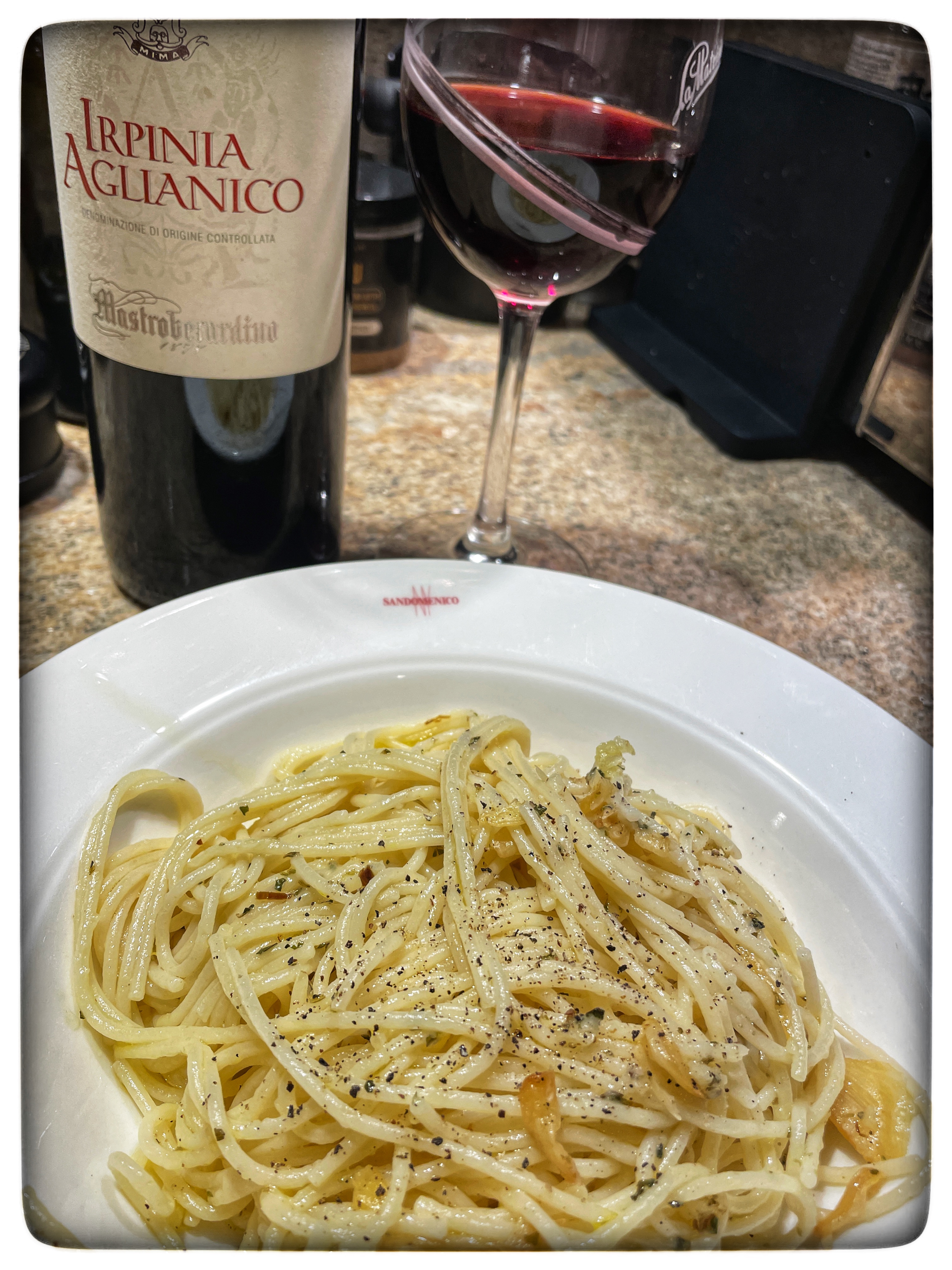 A glass of Mastroberardino’s Irpinia Aglianico from Campania is all that I needed to complete the meal. Sometimes “simple” is both easy and best.