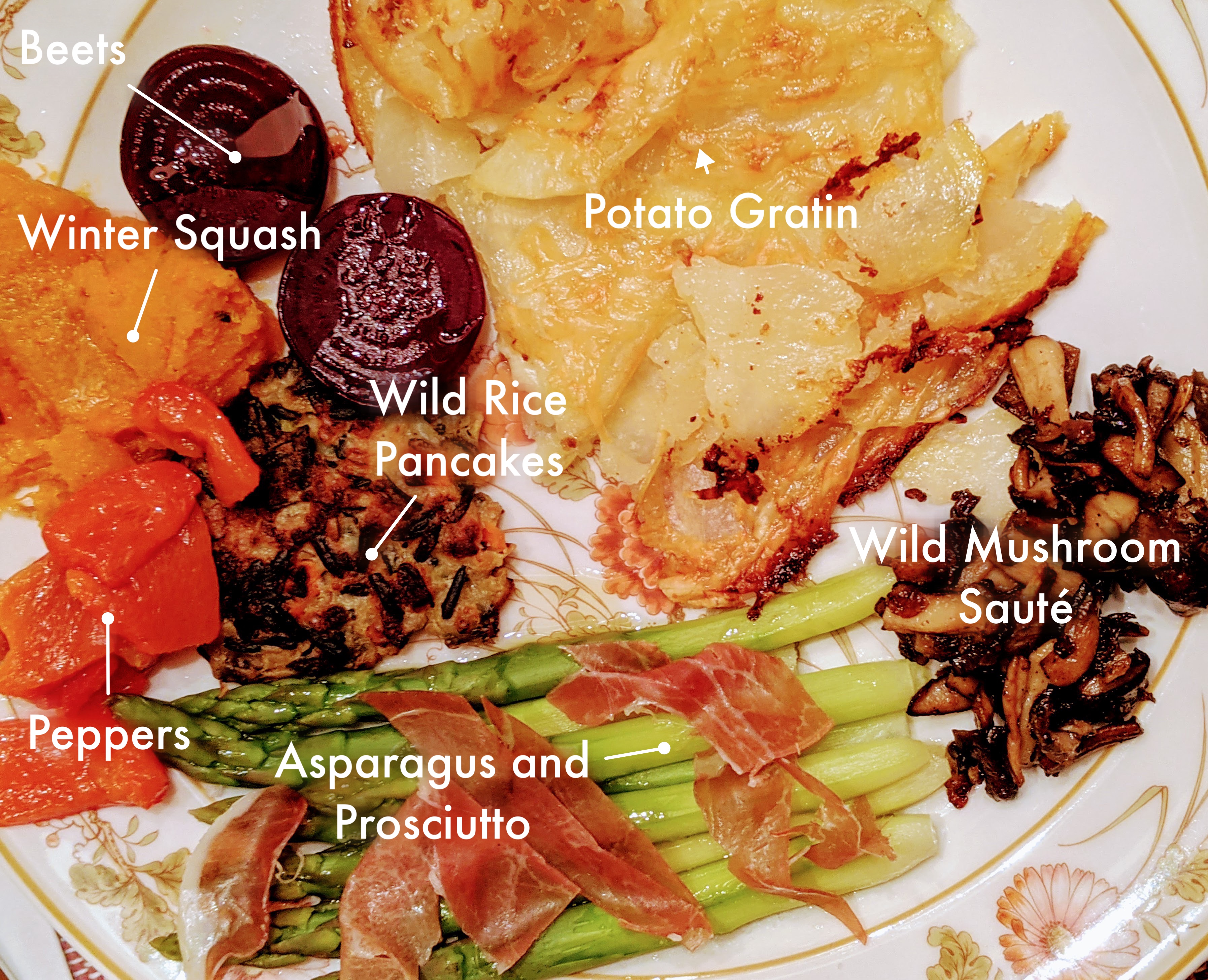 This by Tinrocket 1.0.2 (101) Potato Gratin | Beets | Winter Squash | Peppers | Asparagus and Prosciutto | Wild Rice Pancakes | Wild Mushroom Saute