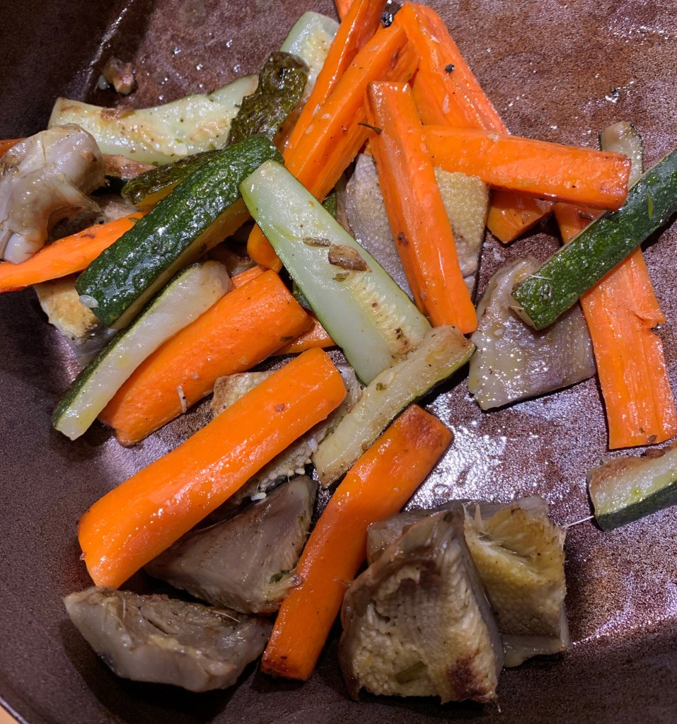 For more vegetables I blanched and then sautéed carrots, zucchini and artichoke, spruced up with herbes de Provence.