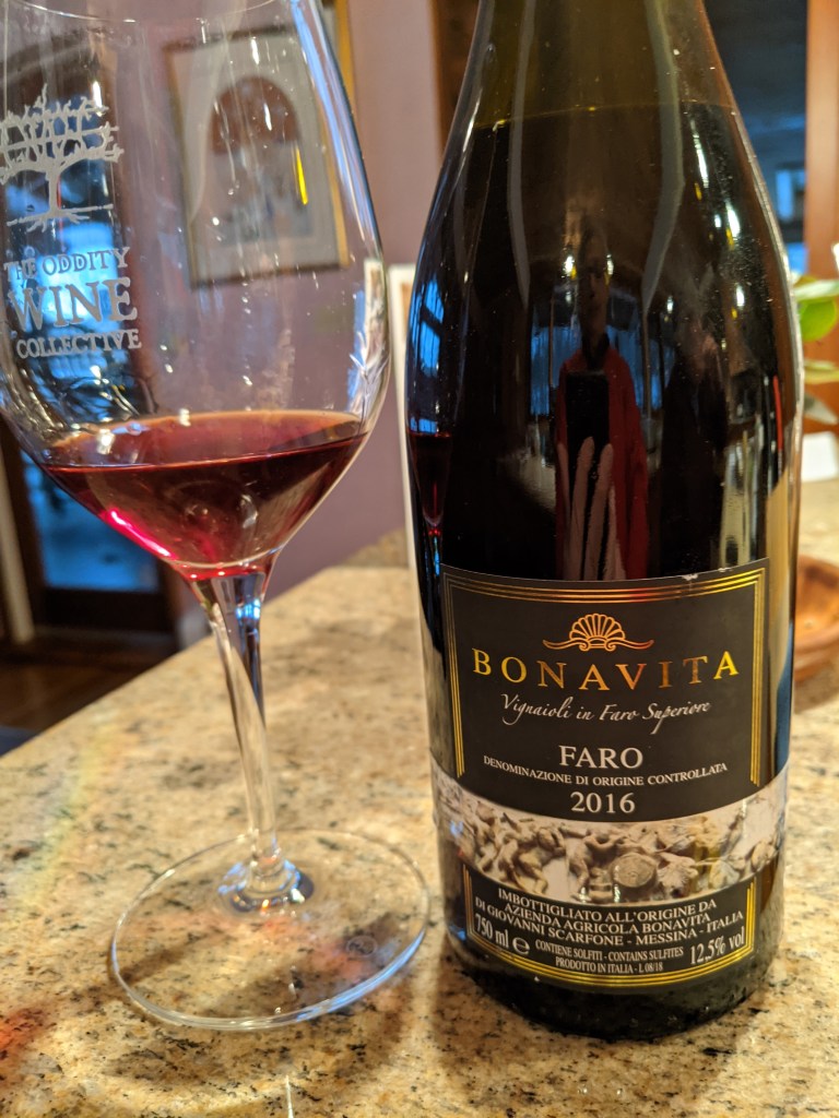 Sometimes I actually make a meal without pasta. One recent example brought together a collection of vegetables, leftovers, and two thin slices of prosciutto to create a dinner that paired beautifully with another of Jan’s wines, the Bonavita Faro from Sicily.